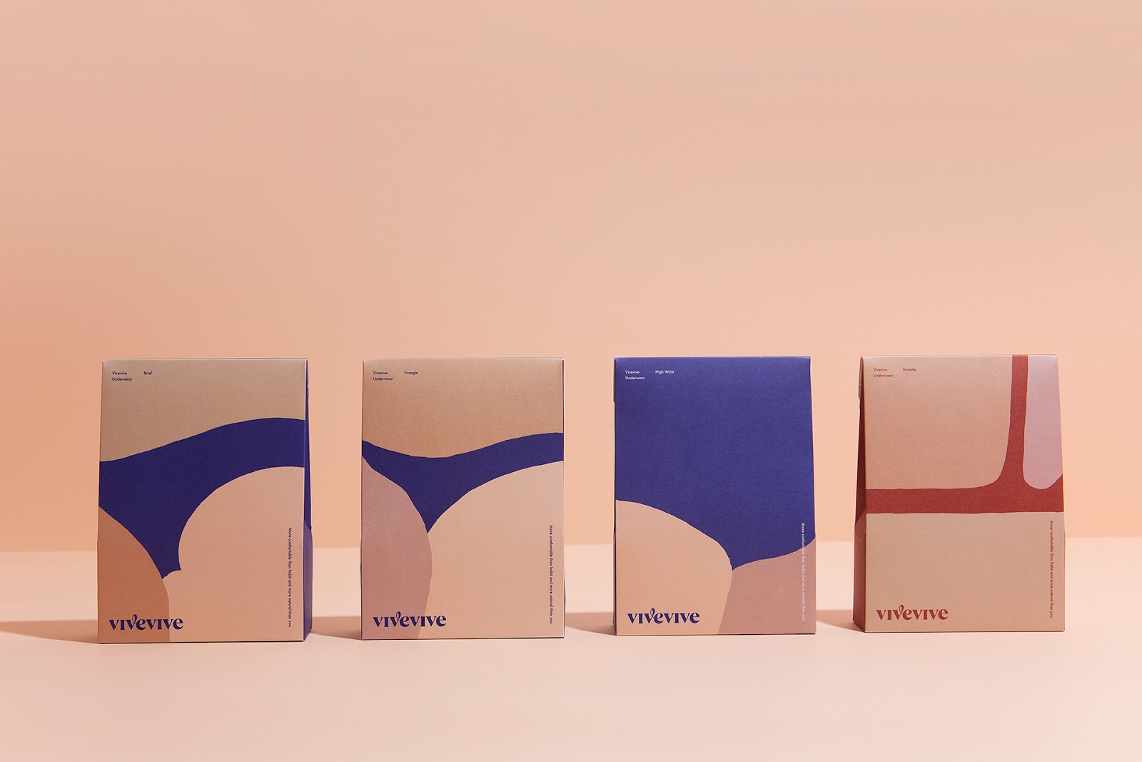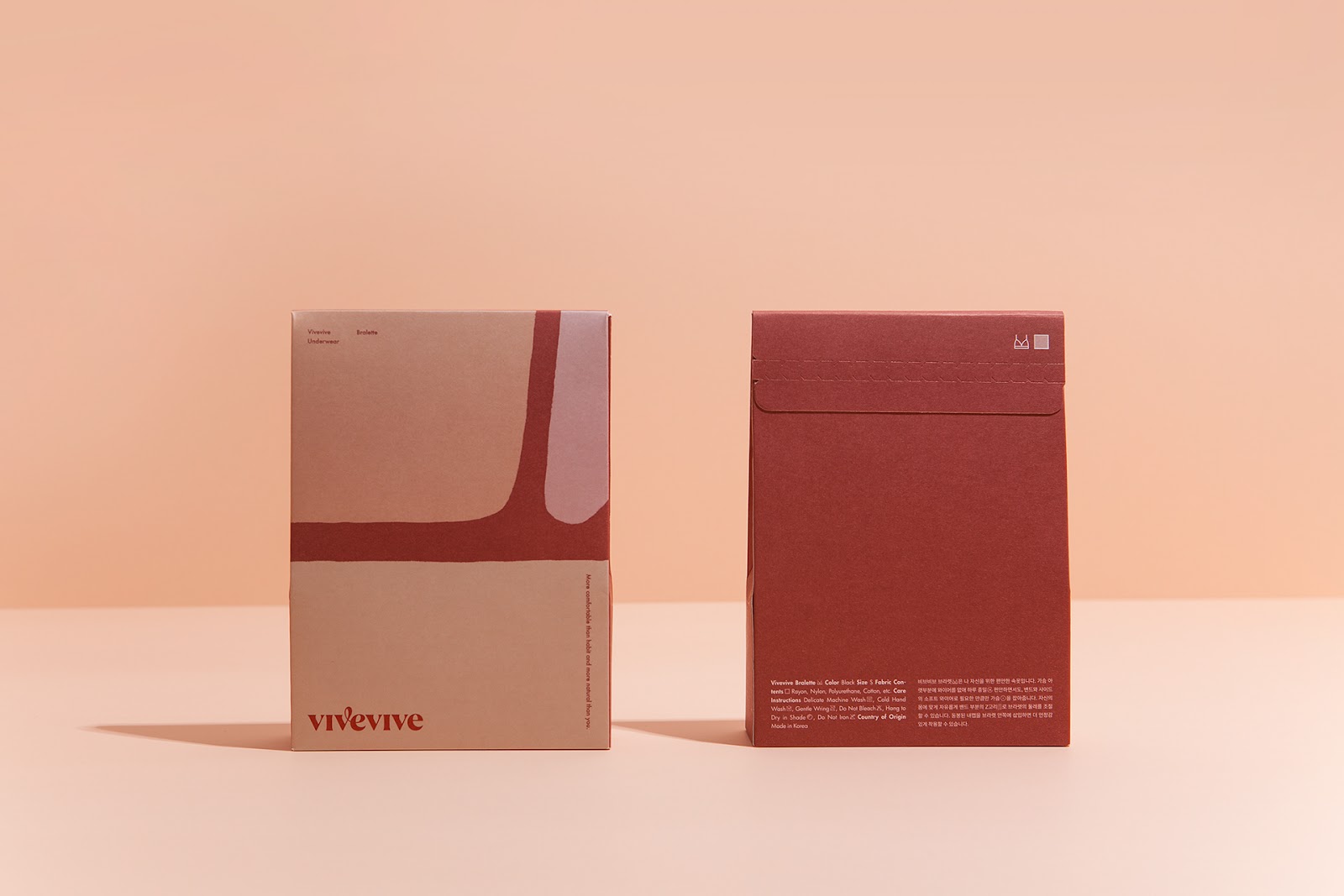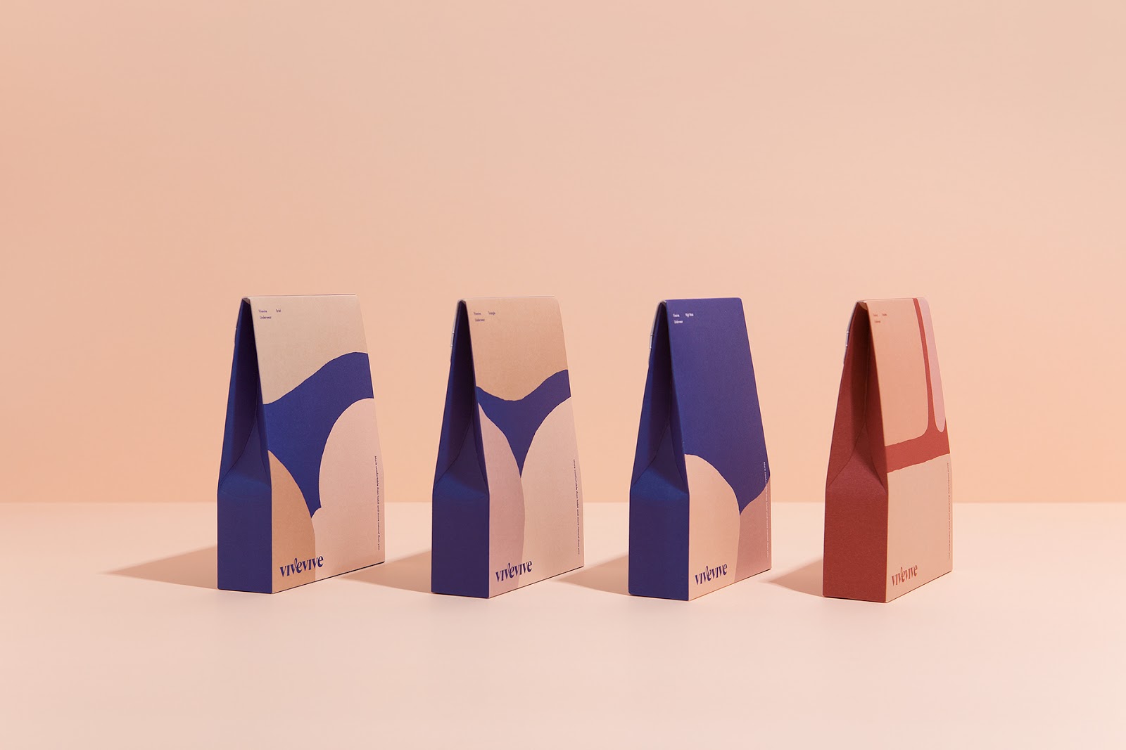來自于韓國的CFC設計工作室為女性內衣品牌vivevive做的視覺識別和包裝設計。最自然的身體是美的,CFC用抽象的手法描繪了女性美麗的身體曲線,也用此詮釋著身體最舒適的狀態。通過對比的大面積色塊拼接來描繪身體局部,很好地抓住了女性身體曲線的特征。又用了膚色的暗淺來描繪局部的光線變化。雖然非常抽象,但能引人聯想,識別度很高。